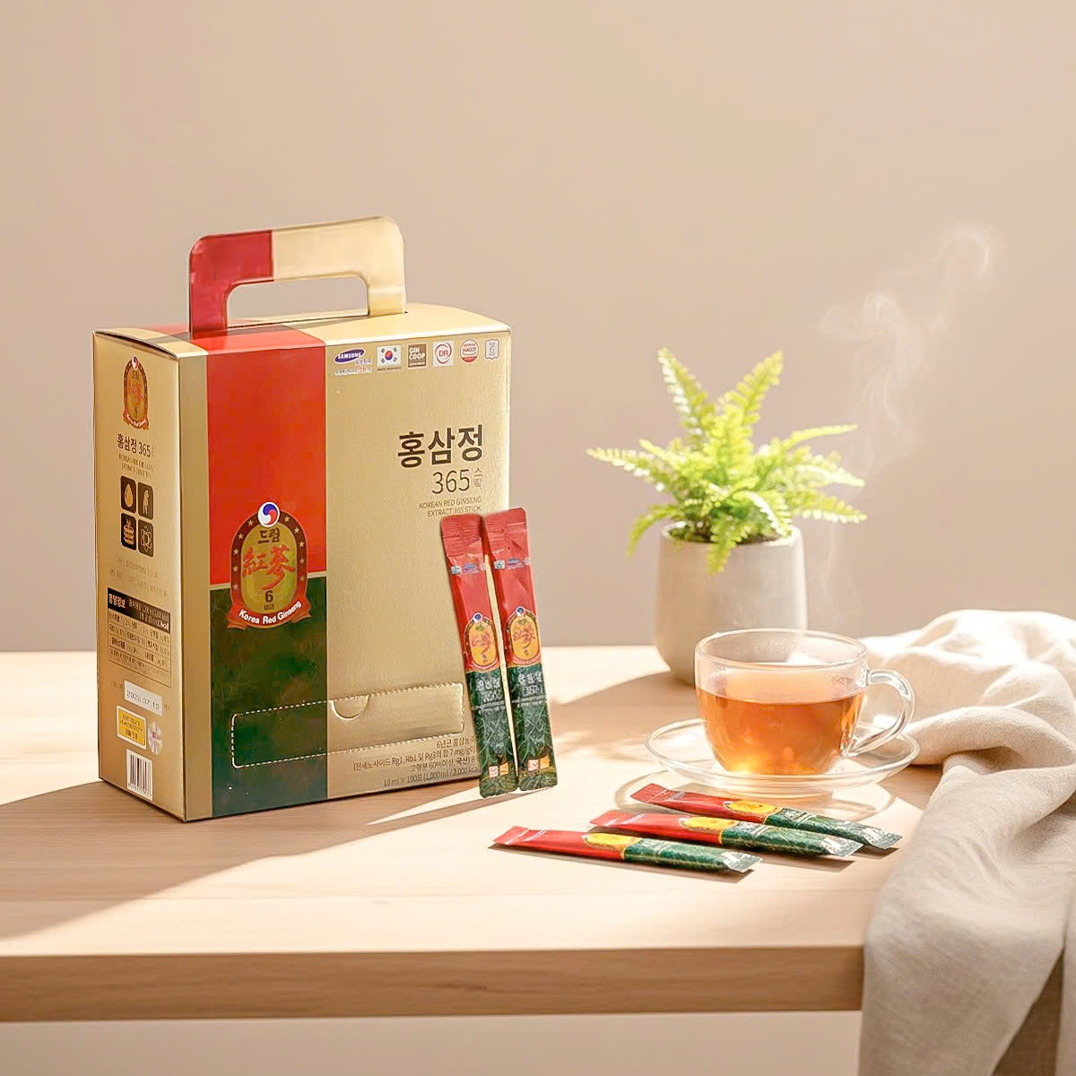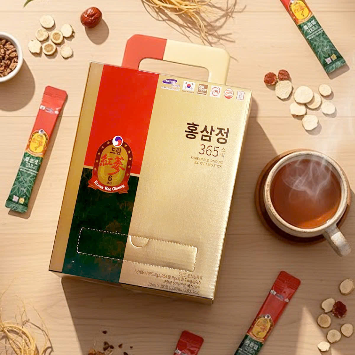 Tinh Chất Hồng Sâm 365 là sản phẩm chăm sóc sức khỏe cao cấp, được chiết xuất từ hồng sâm Hàn Quốc – dược liệu quý nổi tiếng với công dụng bồi bổ cơ thể, tăng cường sinh lực và nâng cao sức đề kháng. Sản phẩm được đóng gói tiện lợi 100 gói/hộp, phù hợp sử dụng hằng ngày cho cả gia đình.